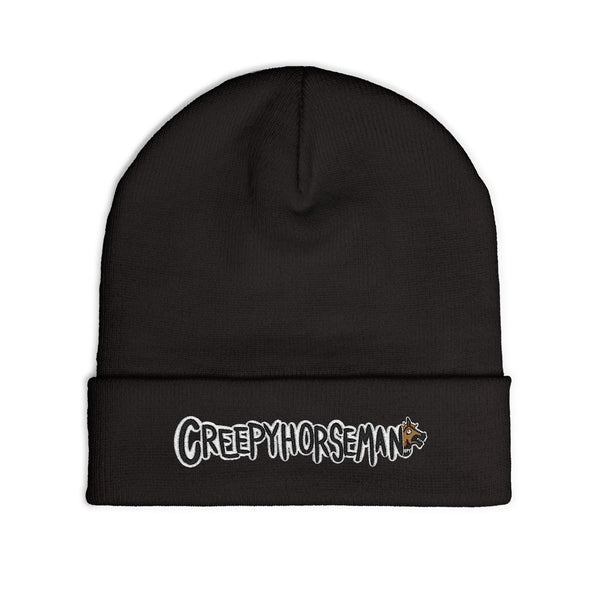 A cozy, embroidered knit beanie that brings a touch of attitude to cold days. Soft cotton-acrylic knit hugs your head in a form-fitting shape while stitched lettering and a small horse-head motif add personality and edge. Lightweight and breathable, it layers easily under hoods or pairs with a leather jacket for late-night walks, outdoor shows, or coffee runs. The cuffed design keeps the embroidery front-and-center, making this beanie a quiet statement piece for anyone who likes subtle, offbeat style.